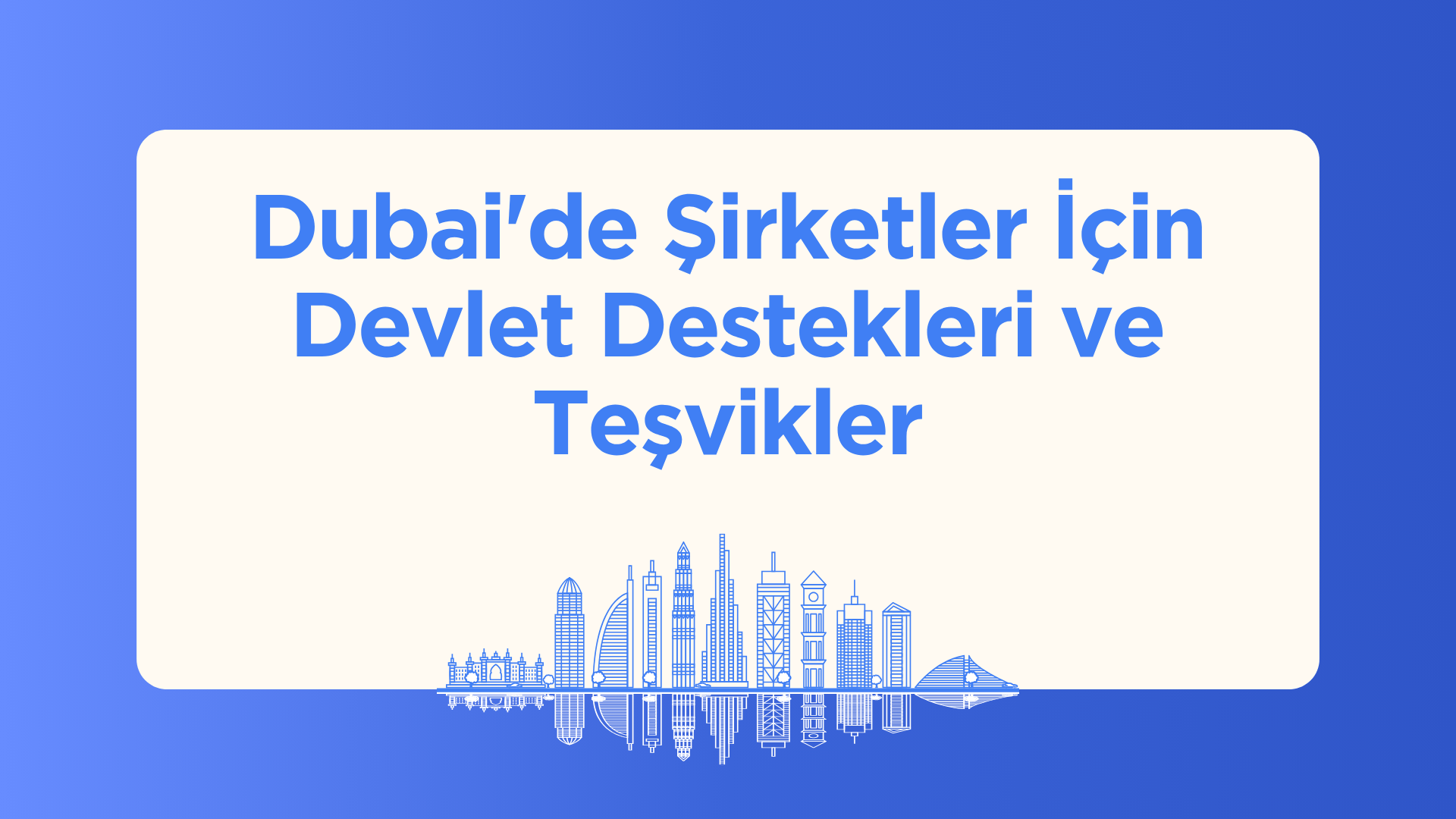 Dubai'de şirket kurmak isteyen girişimciler için Birleşik Arap Emirlikleri hükümeti, ekonomik büyümeyi desteklemek amacıyla kapsamlı teşvik programları sunmaktadır. Birleşik Arap Emirlikleri hükümeti, ekonomik büyümeyi desteklemek ve küresel rekabet gücünü artırmak için her ölçekteki işletmeye yönelik çeşitli destek mekanizmaları geliştirmiştir. "We the UAE 2031" ve "UAE Centennial 2071" gibi hükümet planları, ülkenin sürdürülebilir kalkınma vizyonunu ortaya koymaktadır.